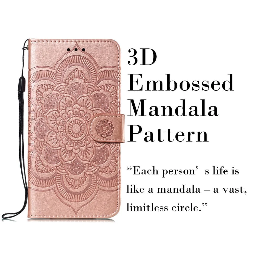 Роскошный чехол-бумажник из розового золота с цветочным узором и бриллиантами для iPhone X, XR, XS, MAS 11, Pro, 7, 8 Plus, кожаный чехол с 3D рисунком мандалы