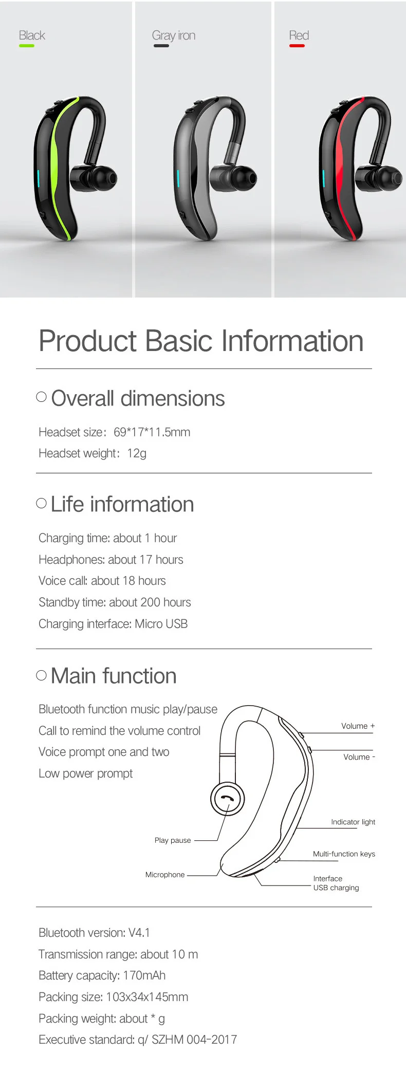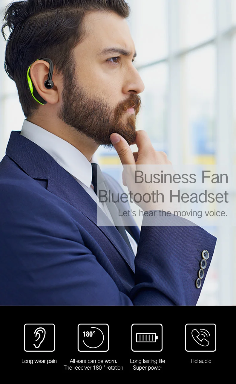 F600 беспроводные Bluetooth наушники, стерео гарнитура, бизнес Bluetooth наушники для вождения 170 мАч, одна гарнитура с микрофоном