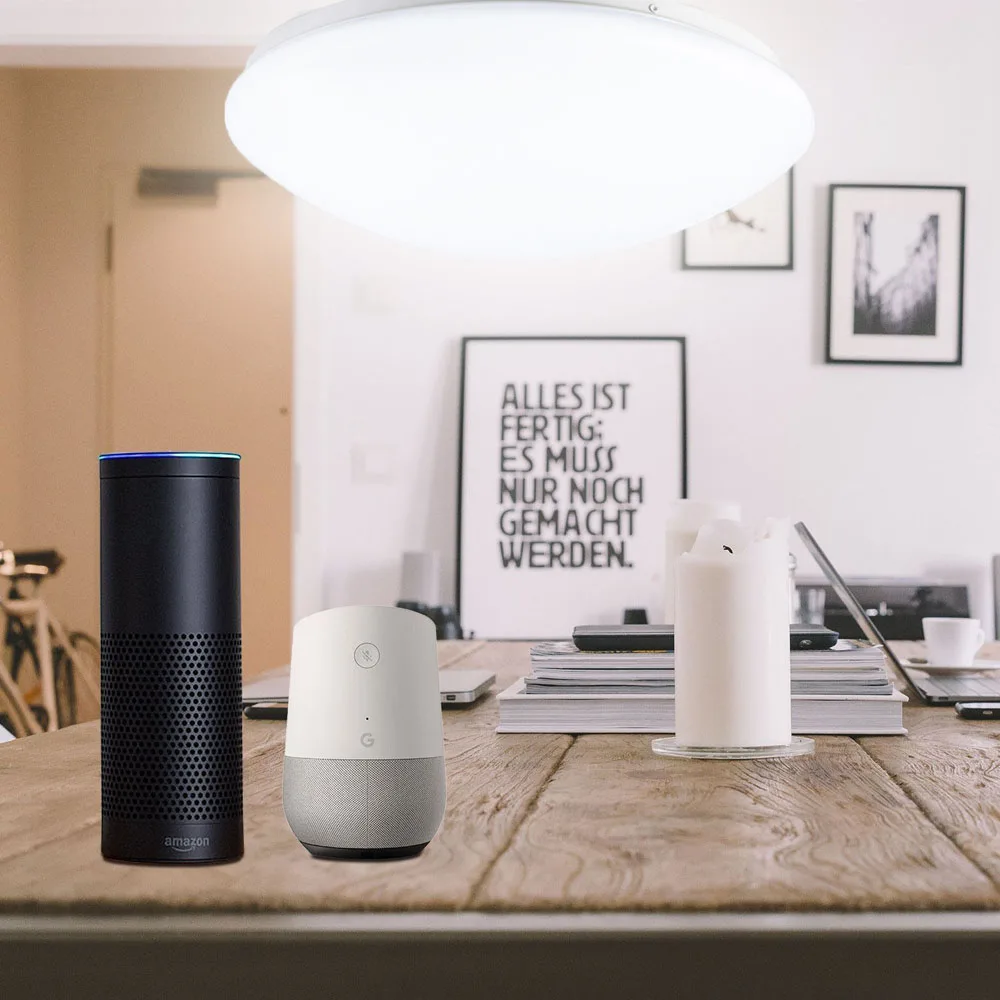 Группа или одно управление: можно создать группу для всех смарт светодиодный потолочный светильник и контролировать все их с помощью только одной команды. И управляйте этим умным светодиодный потолочный светильник с помощью вашего голоса с Amazon Alexa, Google Assistant. Просто дайте команду включить/выключить или затемнить/осветить умный светодиодный потолочный светильник. Функция голосового управления. Дальний контроль: Поддержка дистанционного управления умный светодиодный потолочный светильник, такой как выключенный светильник перед сном на кровати или домашний светильник в другом городе.