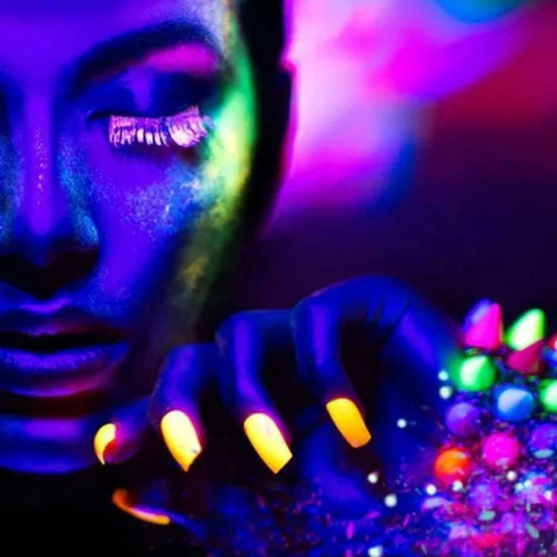 2.Mix no wipe UV top coat and fluoro powder evenly.