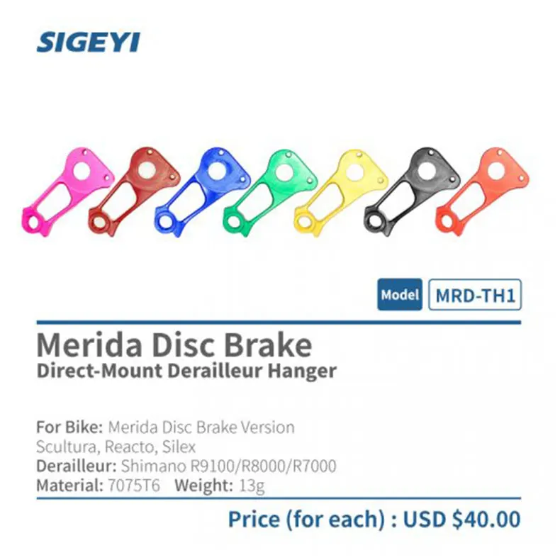 Вешалка переключателя передач с прямым креплением Модель: MRD-TH1 Материал: 7075T6 Вес: 14 г Для велосипеда: версия дискового тормоза Merida Культура, реактито, силекс Переключатель передач: Shimano R9100/R8000/R7000 Цена (для каждого): 40,00 долл. США