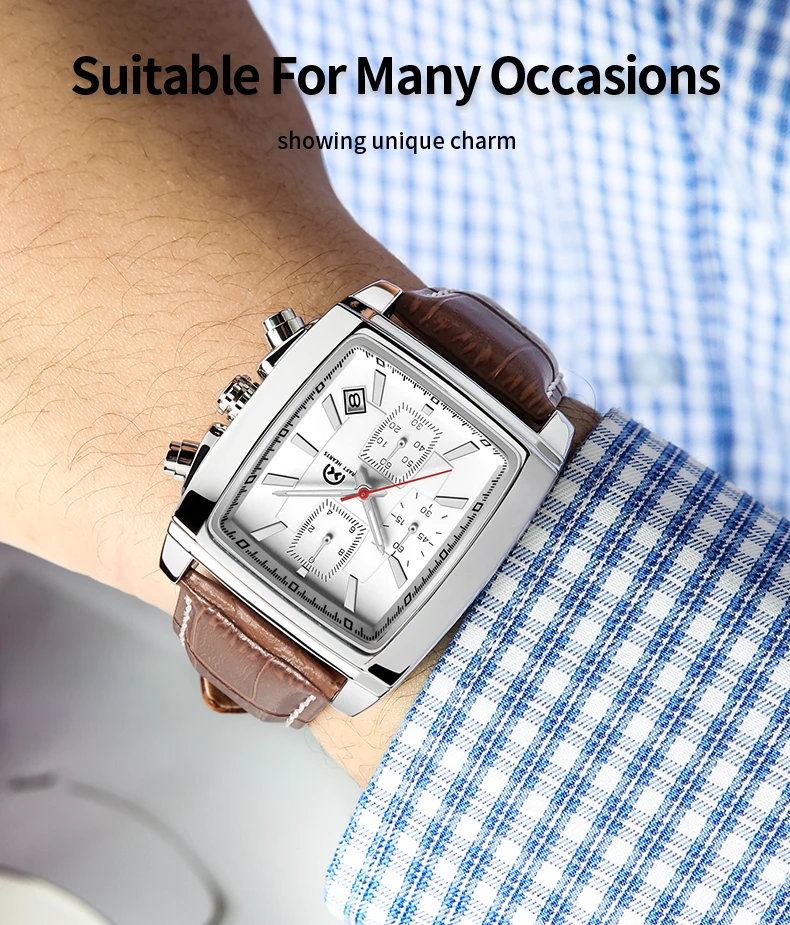 Особенности: -Оригинальные часы с сердечками из магазина часов Millennium; -100% новый с биркой и качественным квартаном; -Водонепроницаемость 3 АТМ (вы можете использовать его во время дождя и мытья рук, не поддерживает горячую воду и плавание); -С хронографом (секундомером) и функцией подсветки, с датой; -Креативный дизайн CREAT HEARTS и высококачественные материалы. Характеристики: -Товар: Мужские квадратные кварцевые часы -Модель: CRAFT HEARTS 2020 -Тип часов: кварцевые часы/мужские часы/военные часы -Функция: хронограф, светящийся, календарь (дата), водонепроницаемый -Материал корпуса: сплав -Материал ремешка: кожа Параметры: -Чехол Диаметр: около 40 мм -Чехол Толщина: около 11 мм -Длина ремешка (максимальная носимая длина): около 205 мм -Ширина ремешка: около 24 мм