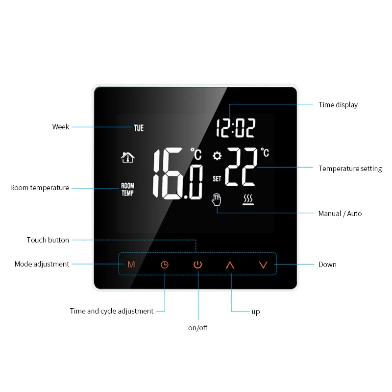 [Точная температура]-ВнутреннийДатчик пола, проницательная температура окружающей среды и температура пола. Автоматическое определение температуры, точность 1 °C.