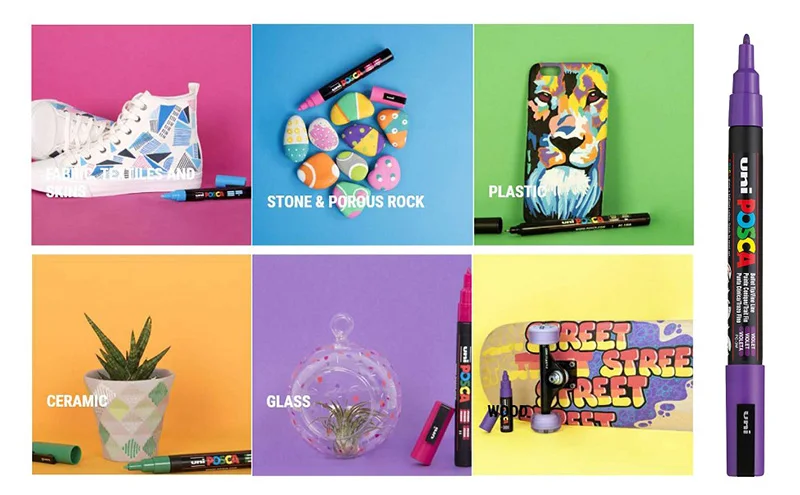 5. Маркеры POSCA были протестированы на более чем 50 поверхностях, включая холст, металл, доски для серфинга, скалы! Маркеры POSCA-это инструмент для выражения своего творчества практически любым воображаемым способом.