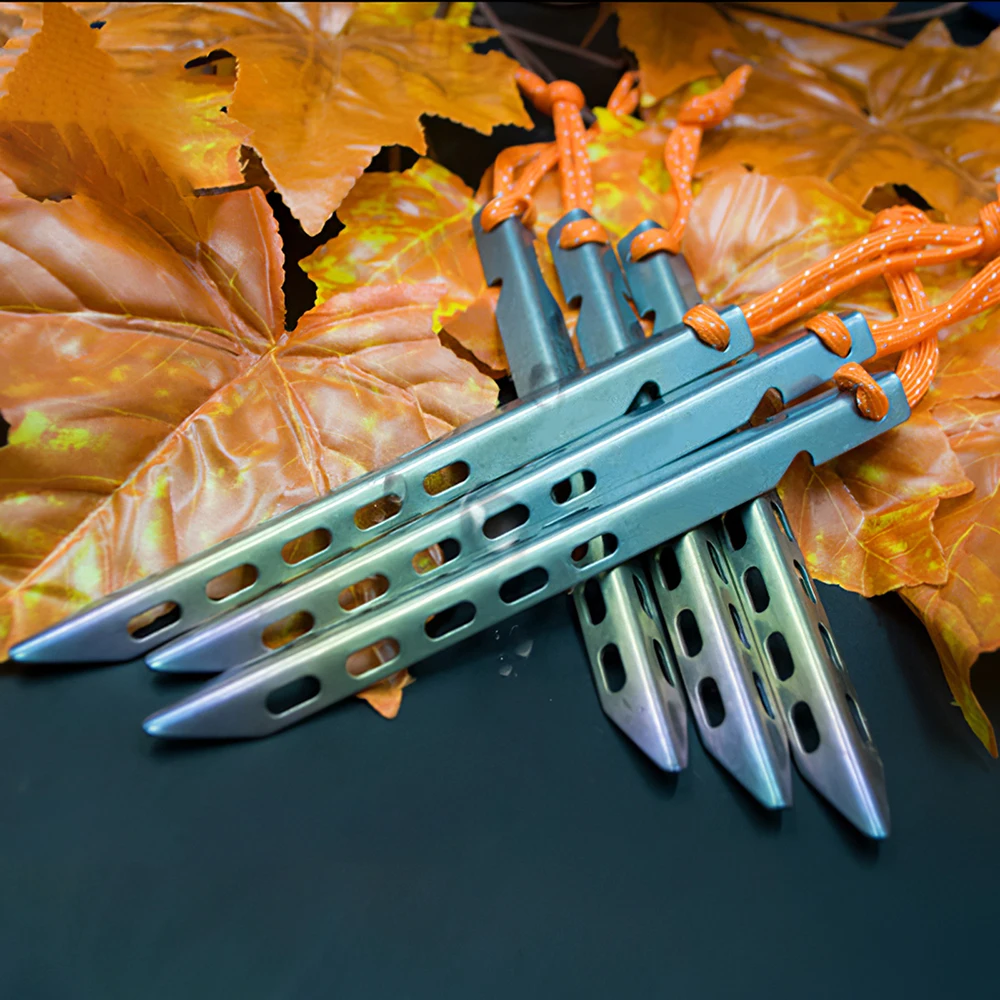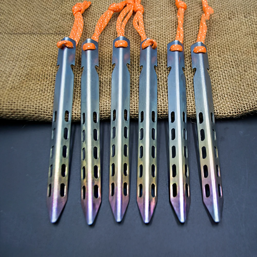 Гвозди изготовлены из высококачественного титанового материала, который достаточно жесткий, что не так легко согнуть и сломать. Вы можете использовать его, чтобы надежно зафиксировать палатку и не беспокоиться о том, что она не имеет формы.