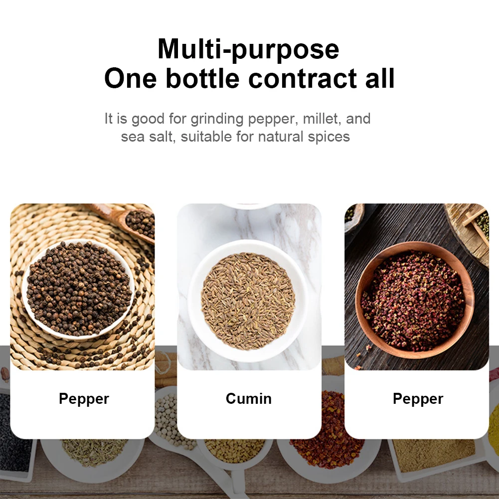 * 3. Регулируемый Керамический шлифовальный сердечник позволяет вручную измельчать приправа от тонкой до грубой для ваших предпочтений, идеально подходит для всех типов солей и пептиц.