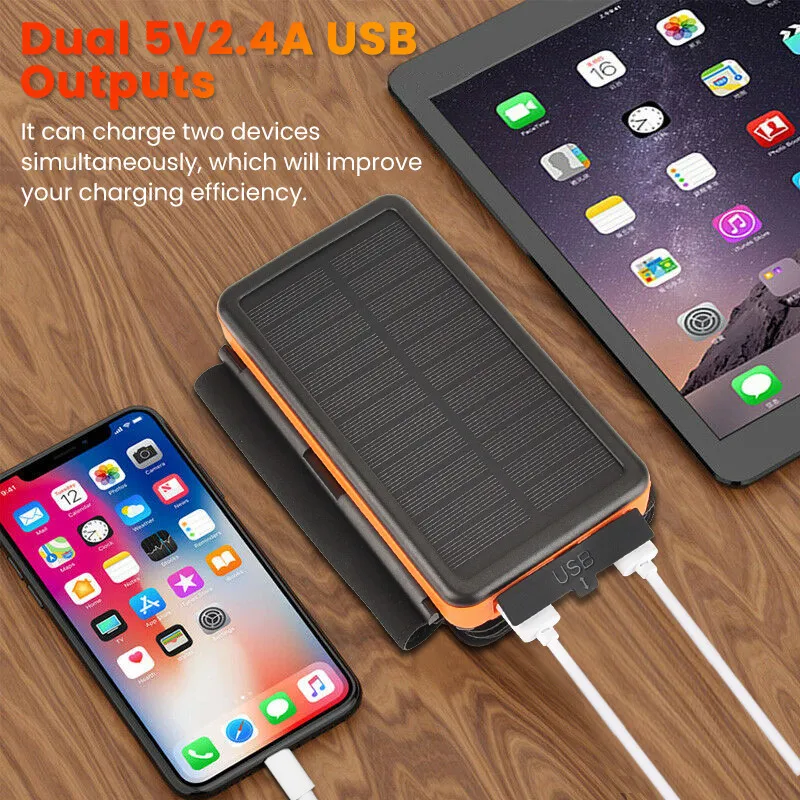 Складной внешний аккумулятор на солнечной батарее 20000 мАч, водонепроницаемый Внешний аккумулятор со светодиодным фонариком, двойная USB солнечная панель, зарядное устройство для Xiaomi iPhone 12 11
