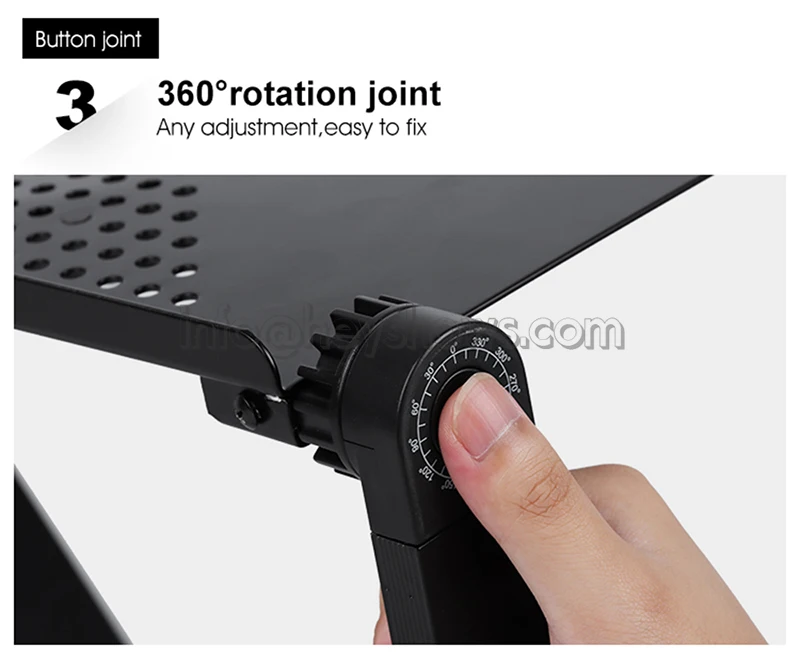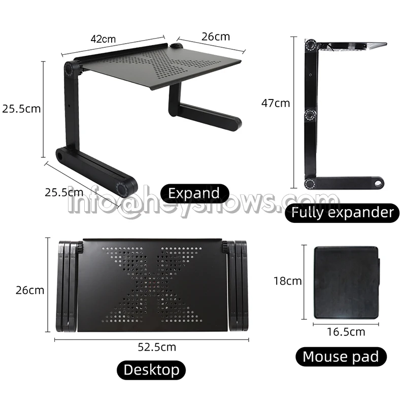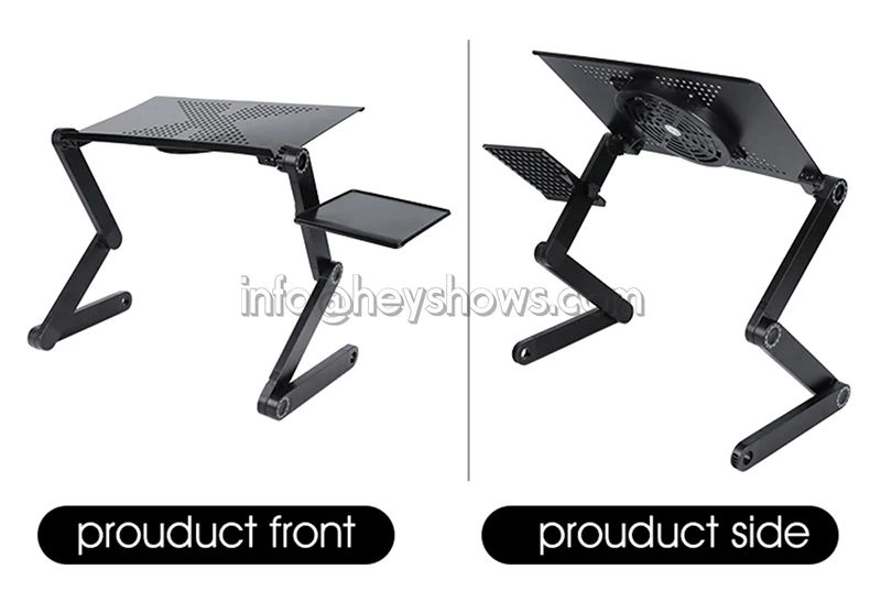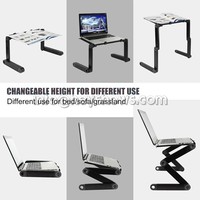 Характеристика:Описание:Это волшебный стол для ноутбука с возможностью складывания на 360 градусов, вы можете использовать его для удовольствия от Интернета в кровати, диване, столе, ковре, газоне.Вы можете использовать как стол для ноутбука, письменный стол, блокнот, обеденный стол, подставка для цветов и т. д. Как только вы отрегулируете ручку в ножке стола на разную высоту и угол, который вам нужен.Изготовлен из прочного магниевого и алюминиевого сплава, обеспечивает высокое качество и компактный дизайнУстанавливается с двумя вентиляционными отверстиями в форме вентилятора, которые обеспечивают сильный поток воздуха, чтобы рассеивать тепло снизу вашего ноутбука. Не только стол, но и кулер.Каждая Складная нога имеет 3 ручки, которые могут регулировать любую высоту и угол. Вращение 360 обеспечивает высокую гибкость так же, как и человеческий.Автоматически фиксированные соединения и высокоинтенсивные соединения ABS, легко проводить точную регулировку угла и высотыЭтот стол для ноутбука с регулируемой подставкой обеспечит вам полный контроль и гибкость, чтобы разместить его в наиболее удобном положении для ввода угла и уменьшения стресса на шее и плечах. Вы можете использовать его в качестве регулируемого стоящего стола, и вы можете сделать это как стол для ноутбука для кровати. Больше никаких боли в шее из-за часов использования ваших компьютеров.Подставка для ноутбука изготовлена из высококачественного магниевого алюминиевого сплава-ультра-прочный светильник.Один большой бесшумный встроенный вентилятор-Охладите ноутбук на USB-источнике питания.Полностью регулируемые ножки-вращаются на 360 градусов и фиксируются под разными углами. Быстро свернуть подставку, чтобы сделать ее портативной.Легко использовать и легко носить с собой, чтобы отрегулировать угол, который вы хотите, нажмите кнопку вниз, вы можете отрегулировать угол, который вы хотите, в соответствии со шкалой выше, отпустите кнопку автоматически фиксированной.Регулируемая подставка для ноутбукаВы будете работать в комфортной среде.Попрощайтесь с болью в шее и напряжением от того, чтобы всегда смотреть вниз на ноутбук.Представляем решения для представительского офиса, вентилируемая подставка для ноутбука! Этот стол для ноутбука предназначен для того, чтобы вы могли настроить офис в любом месте! Легко носить с собой, с весовой рамой на светильник. В то время как это устройство делает идеальный стол для вашего ноутбука, оно также имеет несколько других целей, в том числе:Размер панели: 42x26 смРазмер в сложенном виде: 20,9 "x 10,2" x 1,6 "/53x26x4cm-ТВ-лоток для ужина-Проектор-Стоячий стол-Лоток для книг-Письменный стол-Держатель планшета-Стоячий стол/стоячий стол