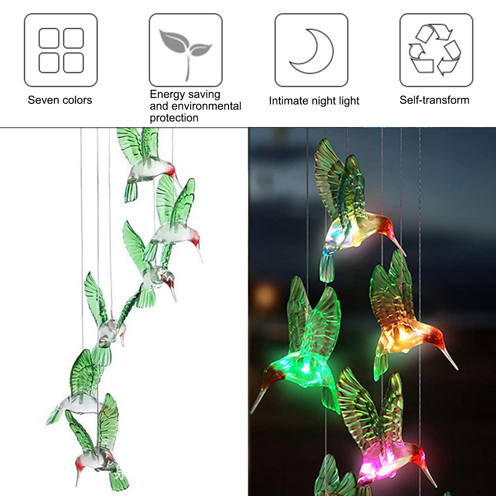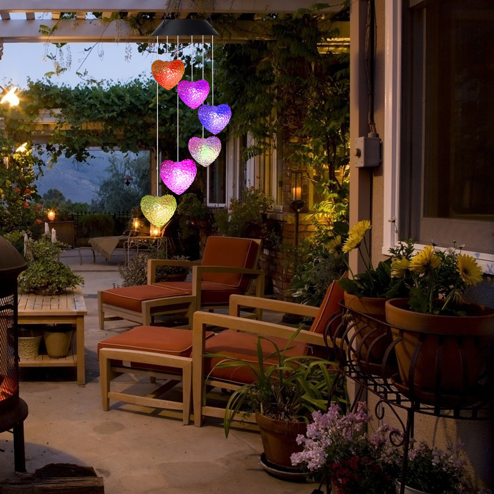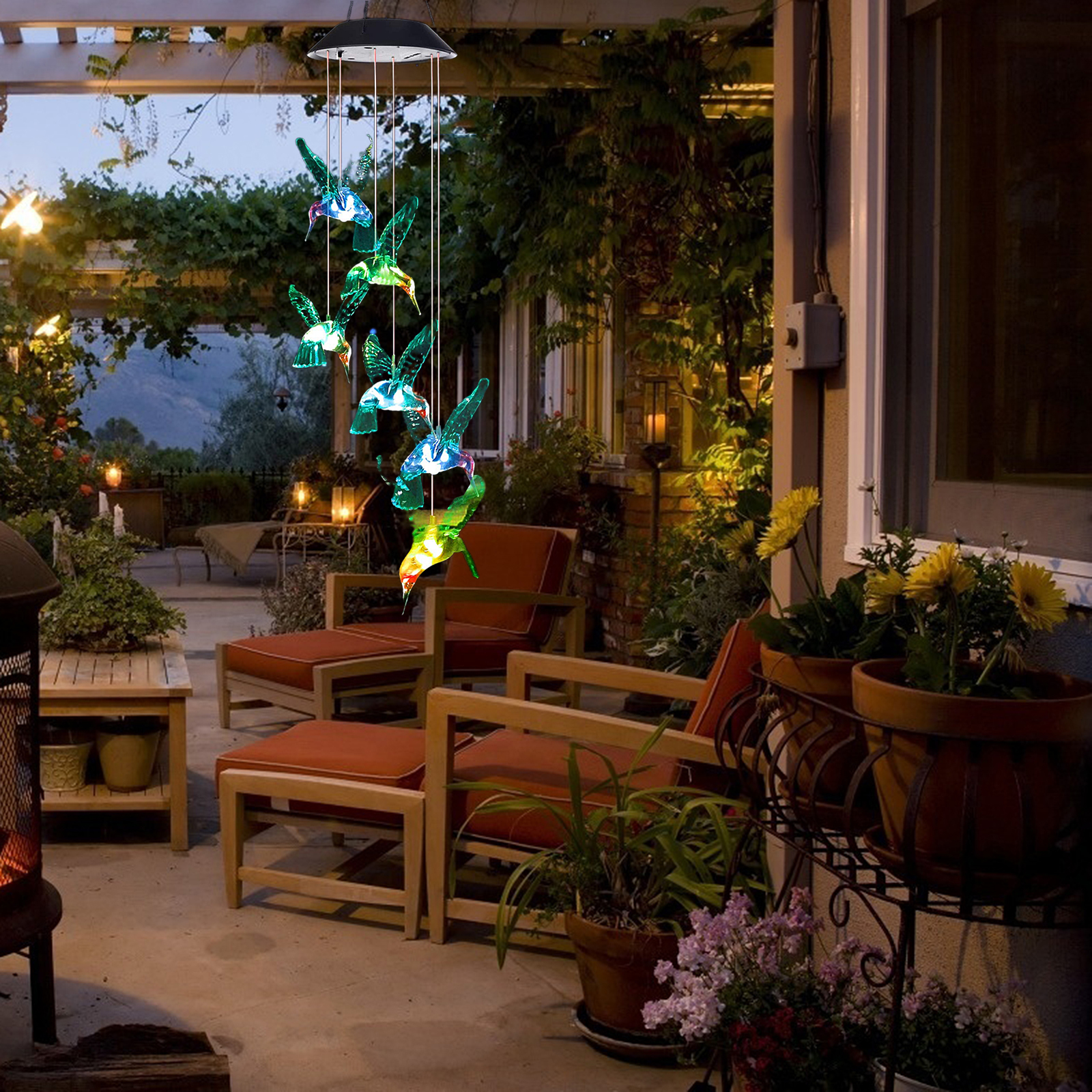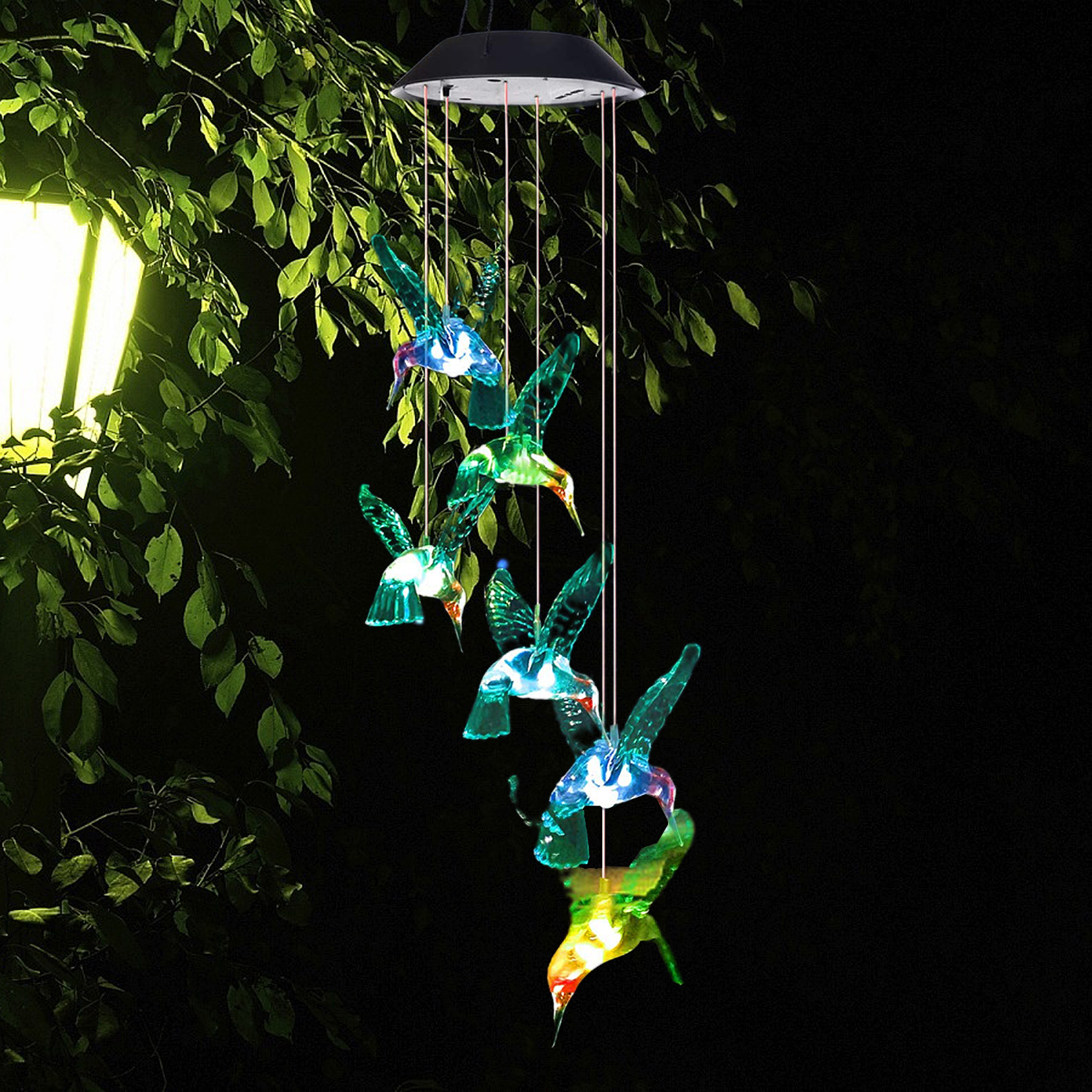 1. Повесьте лампу с колокольчиком ветра, чтобы солнечная панель могла поглощать светильник и автоматически включать светильник в темное время суток.