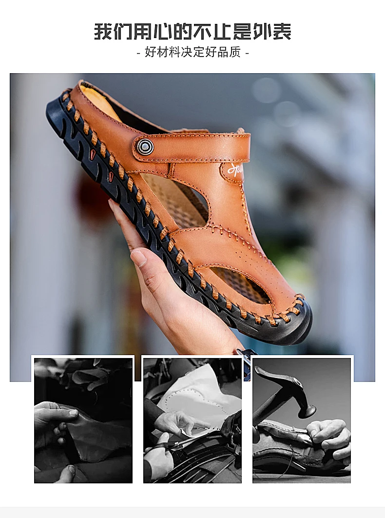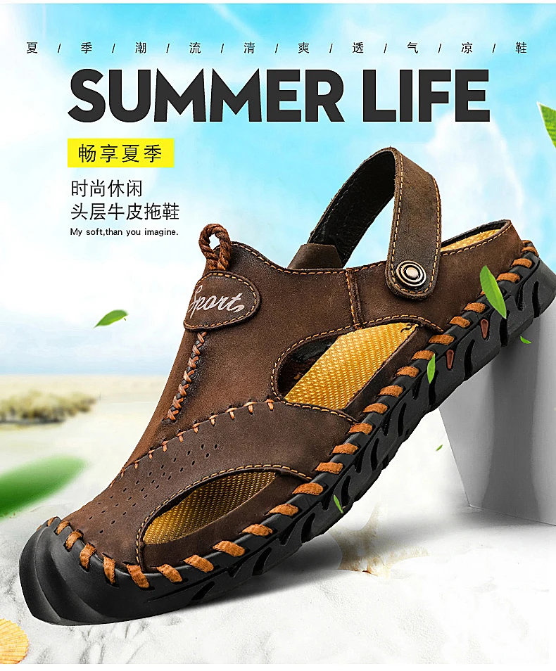 Удобные мужские летние кожаные сандалии
