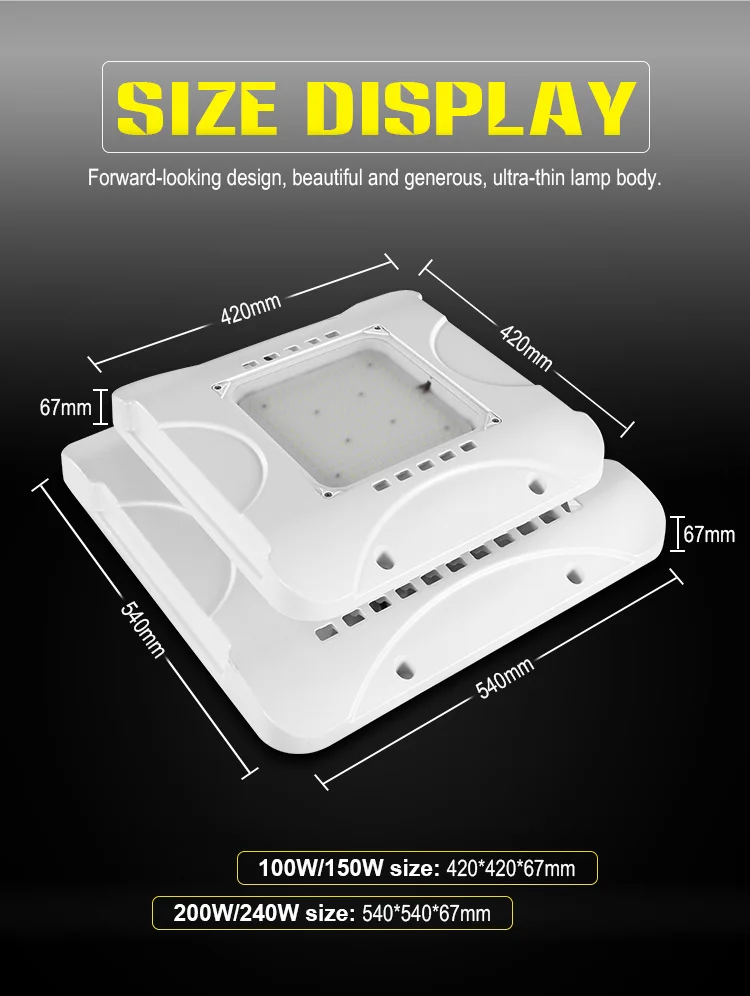 СВЕТОДИОДНЫЙ взрывозащищенный легкий светодиодный фонарь светодиодный навес для автозаправочной станции для парковки гаражного склада потолочный поверхностный монтаж 150 Вт 100 Вт 240 Вт 200 Вт