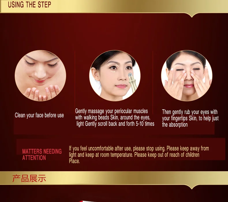 Шаг 2: аккуратно свернутый массаж с помощью кожи вокруг глаз, вдоль кожи вокруг глаз, мягко свернуть назад и вперед 5-10 раз
