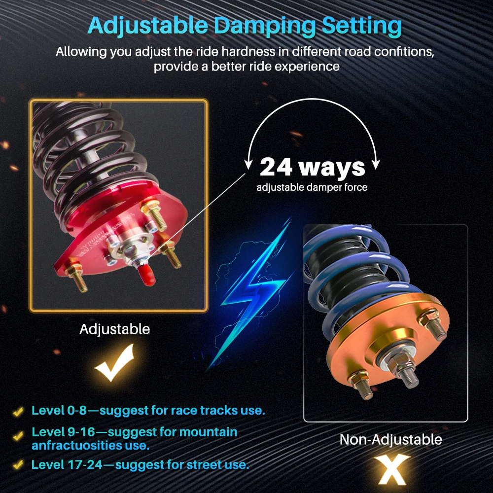 Регулировка полной длины-отдельная регулировка высоты без ущерба для хода демпфера и без удаления коиловера из автомобиля.