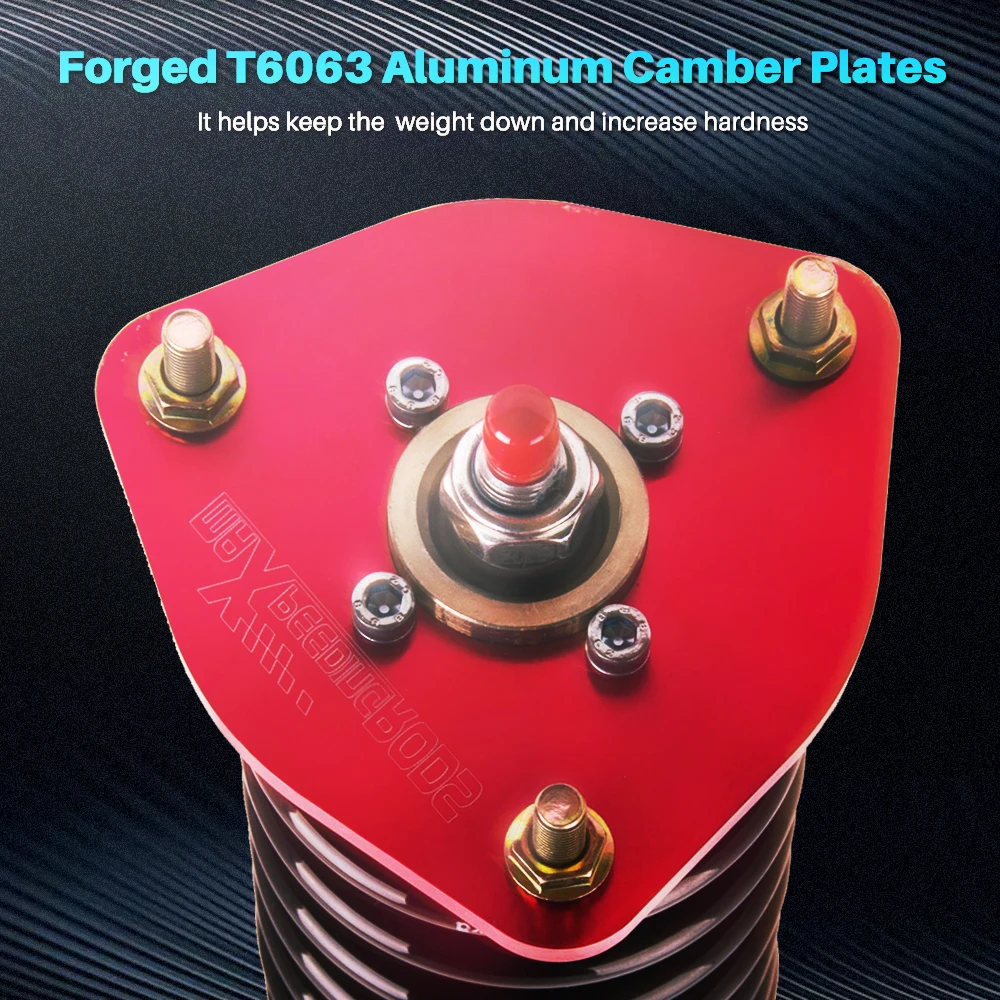 Большинство деталей в наших системах Coilover, включая крепления, ошейники и пружинные гайки, разработаны из 6061-T6 алюминиевая заготовка, что приводит к легким, прочным и коррозионно-стойким компонентам.