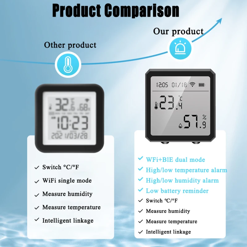 Используйте высокоточные датчики для контроля влажности и температуры в окружающей среде в режиме реального времени. Разница температур ± 0,5 ℃, и влажности разница ± 5% RH. ℃ и ° F может быть веру.
