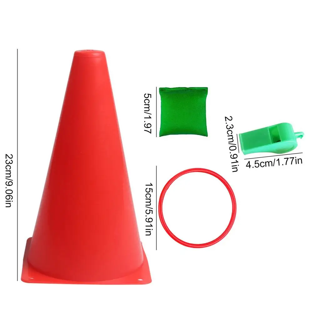2. Полный игровой набор: Этот набор включает в себя 6 карнавальных конусов, 10 цветных колец и 10 мешков с бобами и 1 свисток. Подходит для всех возрастов.