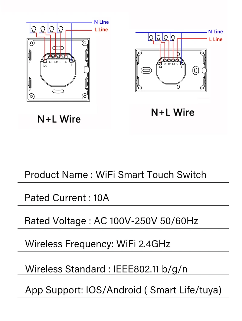 6. Нейтральный провод необходим в ваших коробках переключателей для правильной работы; Поддерживает только сеть 2,4G.