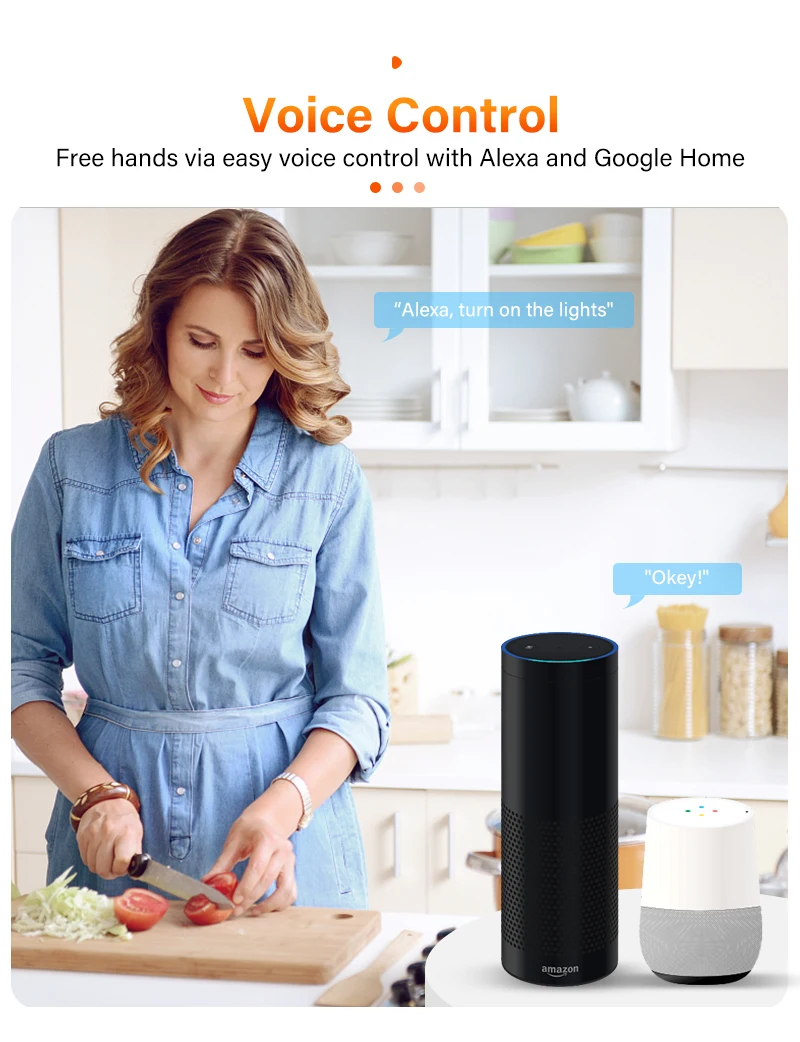 2. Совместимость с Alexa и Google home позволяет свободно управлять голосом; Удаленное управление устройствами на вашем смартфоне через приложение smart Life/Tuya, где бы вы ни находились.