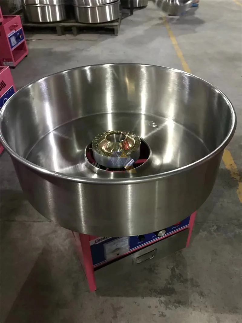Кастрюля из нержавеющей стали с диаметром 500 мм. Это займет всего несколько минут, чтобы получить сладкие конфеты спиннинг и готовы наслаждаться. Легко создавать хлопковые конфетные шишки, твердые конфеты и сахарную нить.