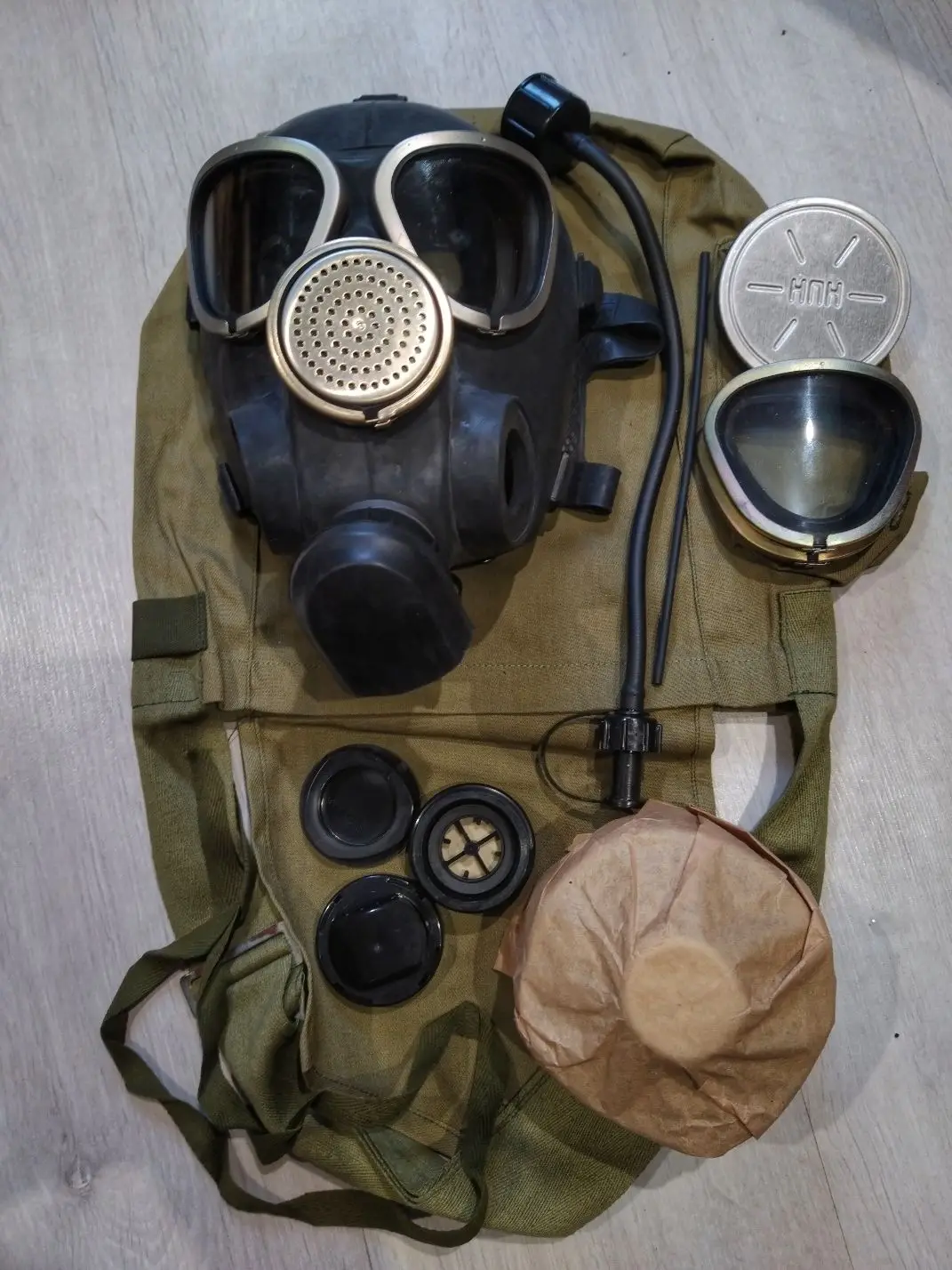 Противогаз ГП-7ВМ. Настоящий противогаз! Подойдет для производства, косплея, коллекционирования, или как подарок близкому человеку. Вполне может защитить от некоторых вирусов ;) В комплект входит противогаз, фильтр, сумка, утеплительные стекла (манжеты), заглушка, переходник на резьбовой фильтр, питьевой шланг, НПН, уплотнительный шнур. При ппокупке от 5 комплектов разом действует скидка 10%. Комплект может незначительно отличаться от фото.