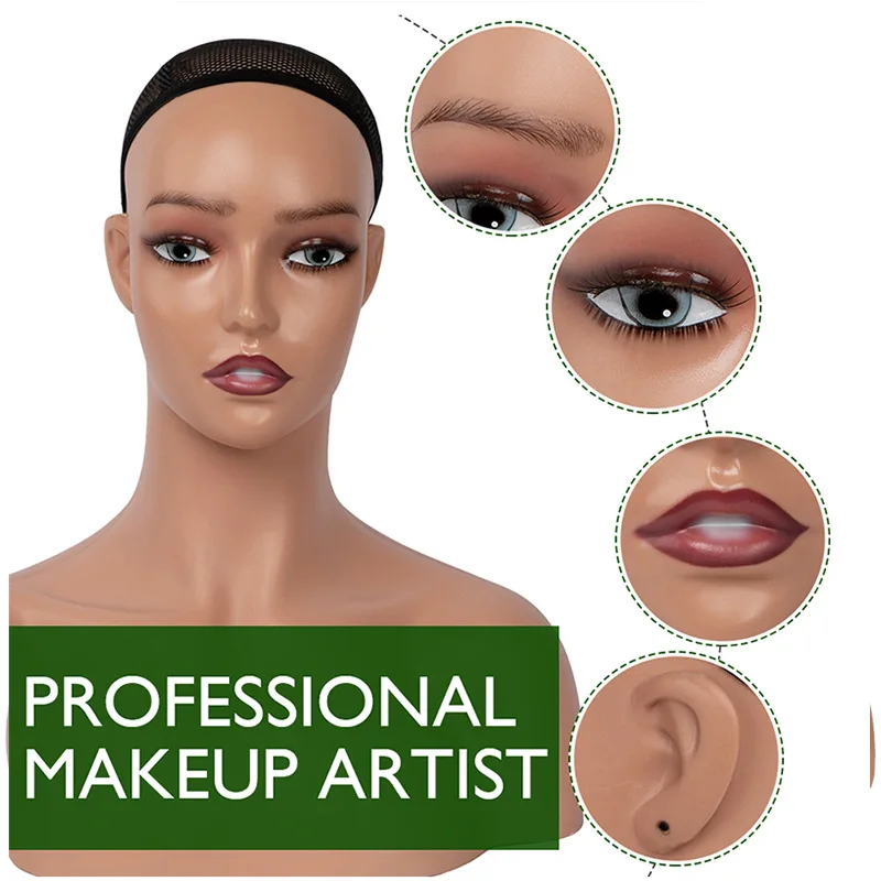 4. Красивый внешний вид и цвет лица:Голова манекена имеет реалистичный красивый вид, с ресницами, помадой и макияжем. В наличии 3 различных цвета: темно-коричневый, коричневый, бежевый, светильник.