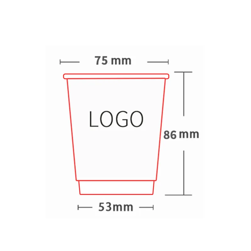 Размер: 9oz 250ml верхний диаметр: 7,5 см, нижний диаметр: 5,3 см, высота: 8,6 см