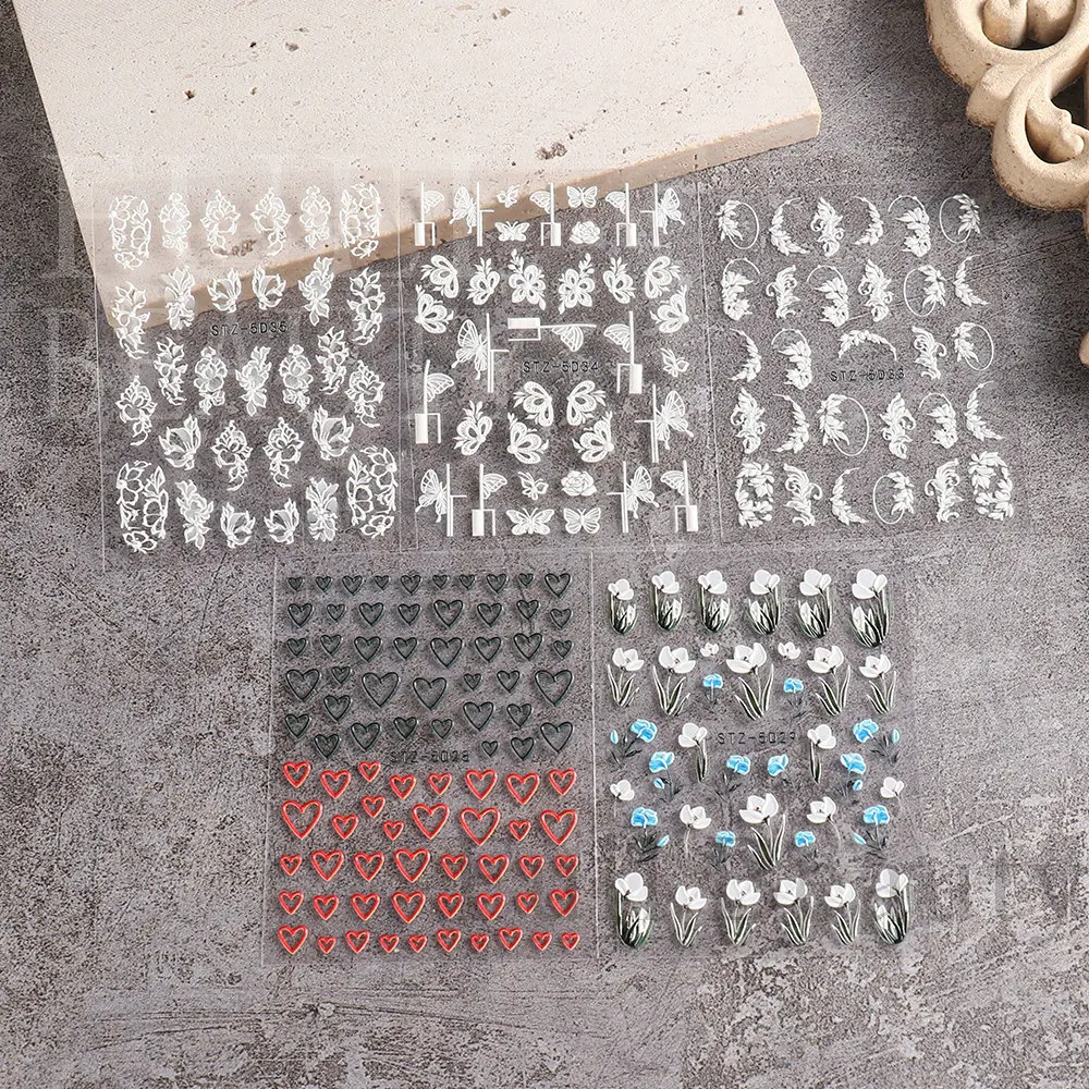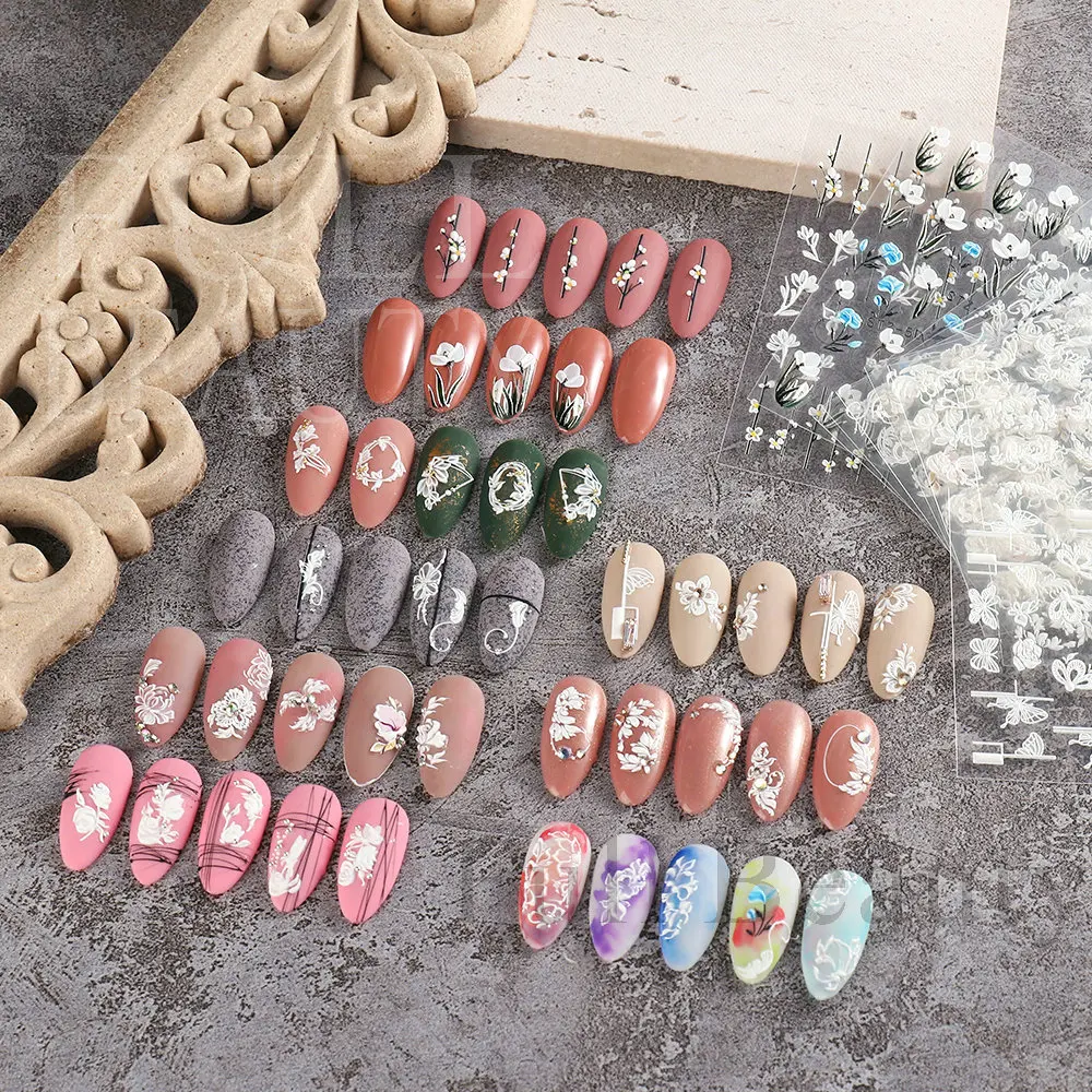 5D Цветок тиснением наклейки для ногтей Магнолия Цветочные Ползунки с гравировкой дизайн с фактурной наклейки для ногтей элегантный Декор Аксессуары для маникюра
