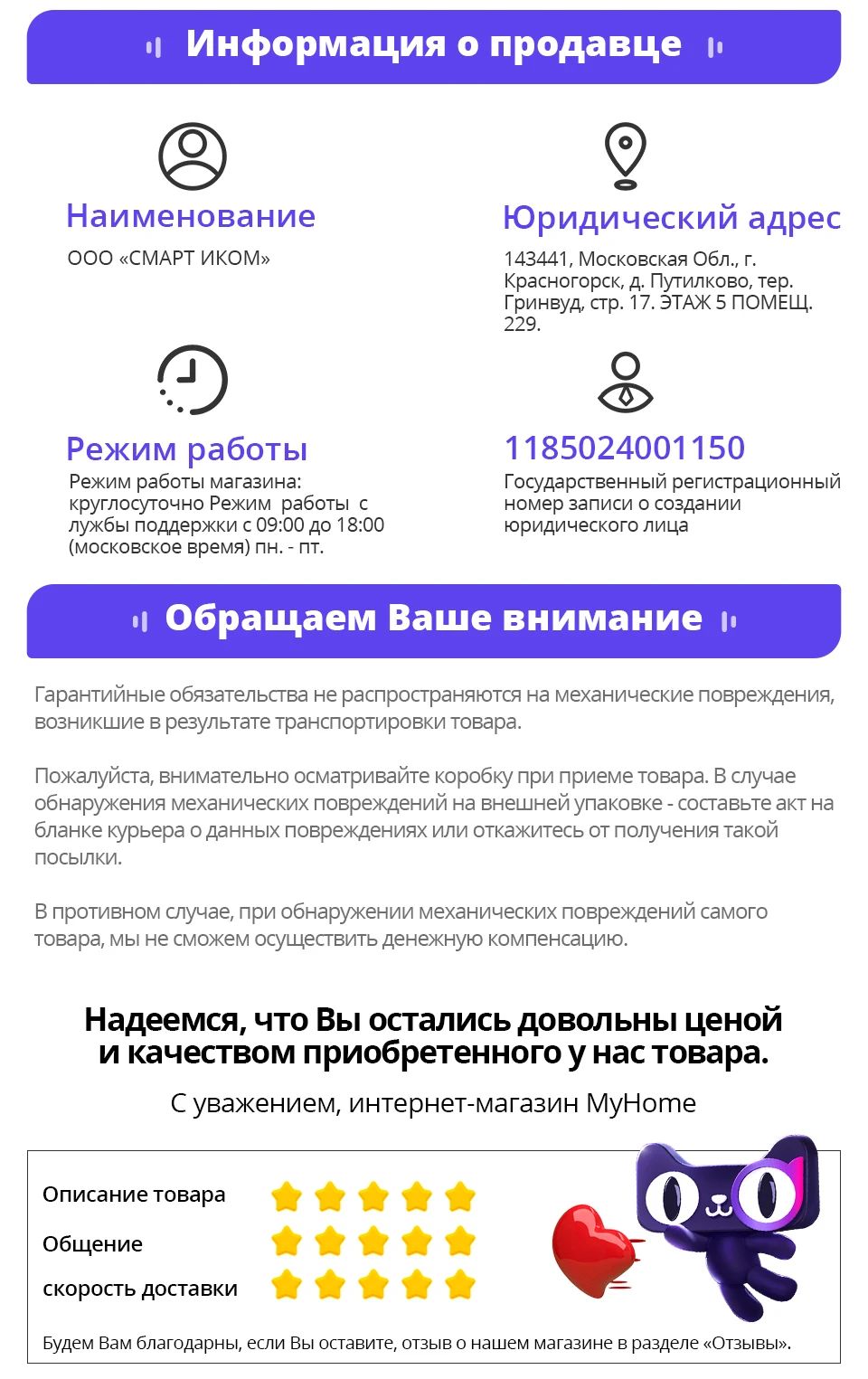 Магазина MyHome Russia Store работает с 24.06.2021. его рейтинг составлет 95.21 баллов из 100. В избранное добавили 51125 покупателя. Средний рейтинг торваров продавца 4.8 в продаже представленно 194 наименований товаров, успешно доставлено 40637 заказов. 11571 покупателей оставили отзывы о продавце.