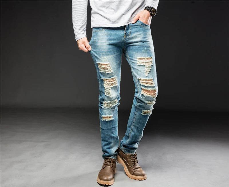 Новинка 2022 рваные зауженные прямые Стрейчевые мужские джинсы в европейском и