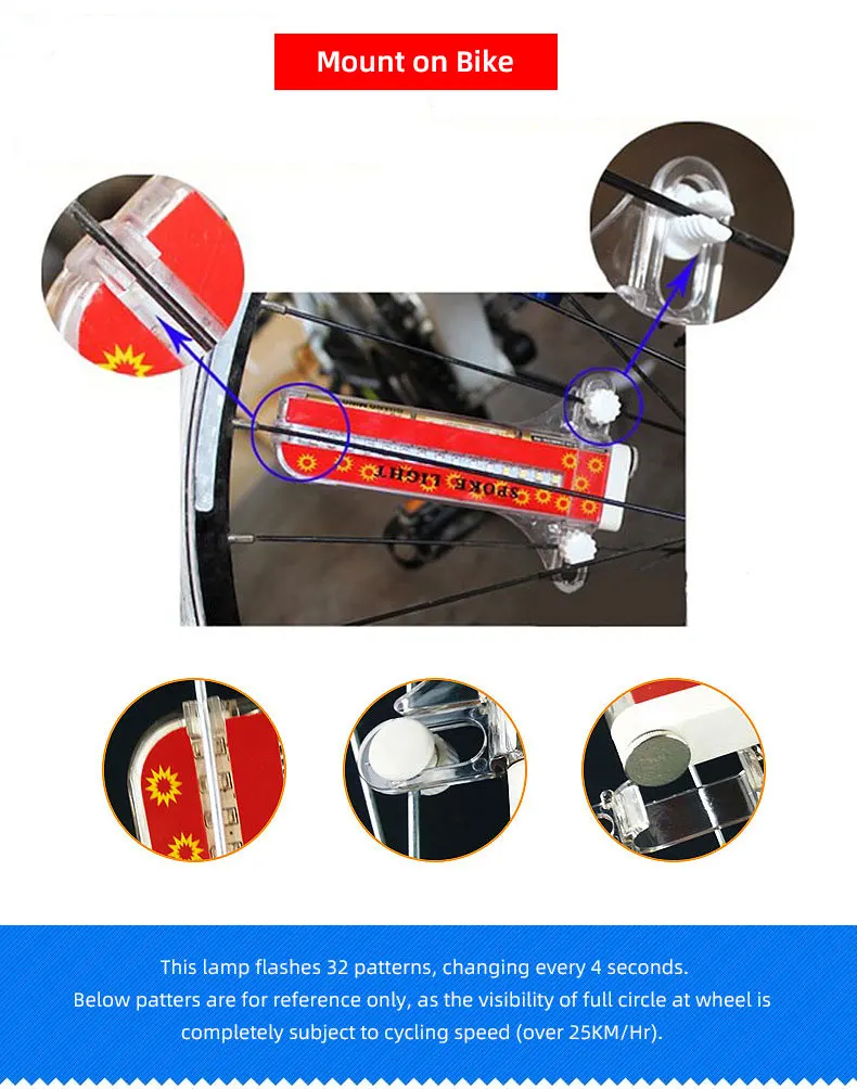 -Позиционирование: фиксируется на велосипедных спицах