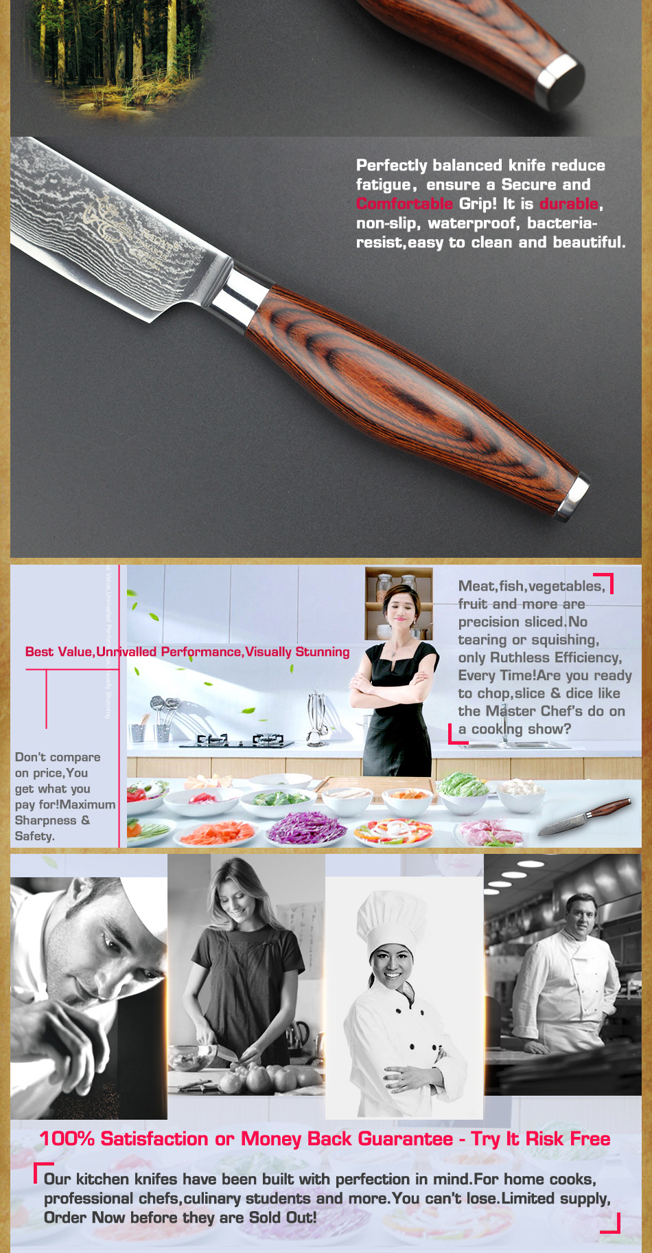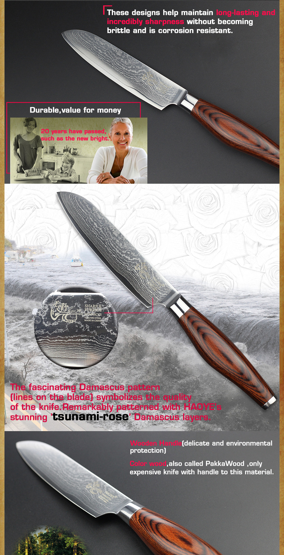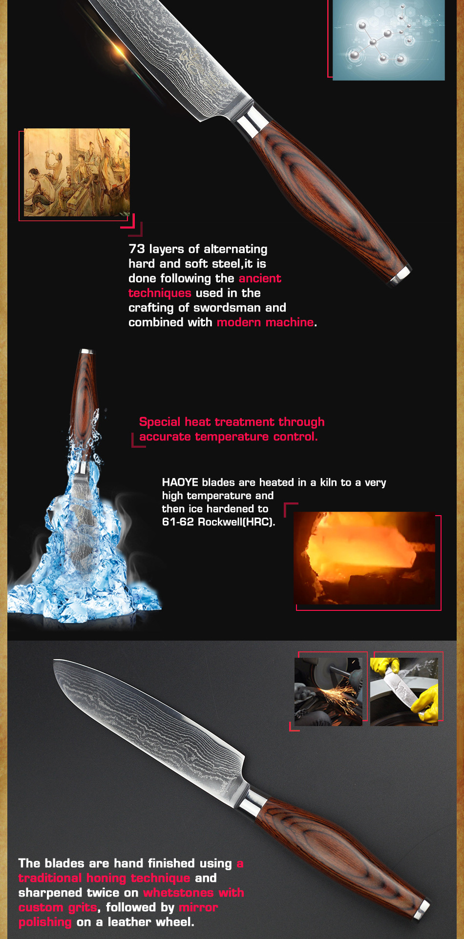 Промыслы:73 слоя чередующейся твердой и мягкой стали, HAOYE лезвия нагреваются