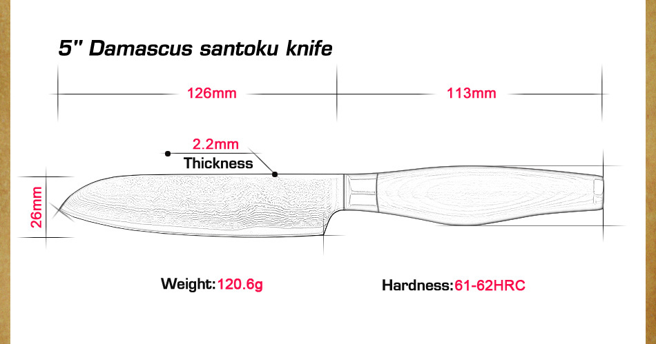 Продукт:5 "Дюймовый дамасский нож santoku.