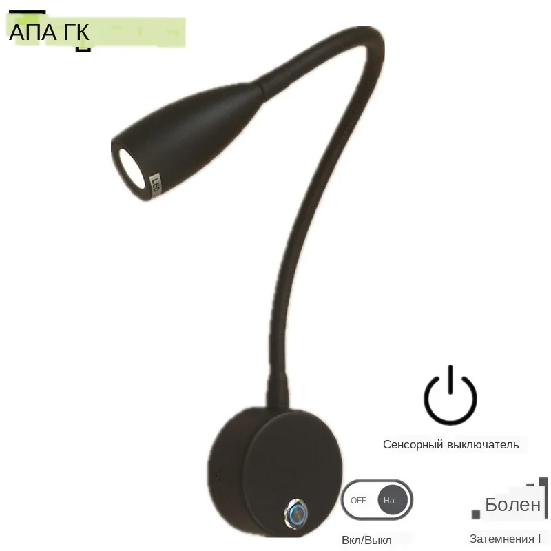 Topoch прикроватный светильник для чтения, Минималистичная Светодиодная лампа для чтения в постели с регулируемой яркостью сенсорный выключатель изголовье настенное крепление на поверхность матовый черный