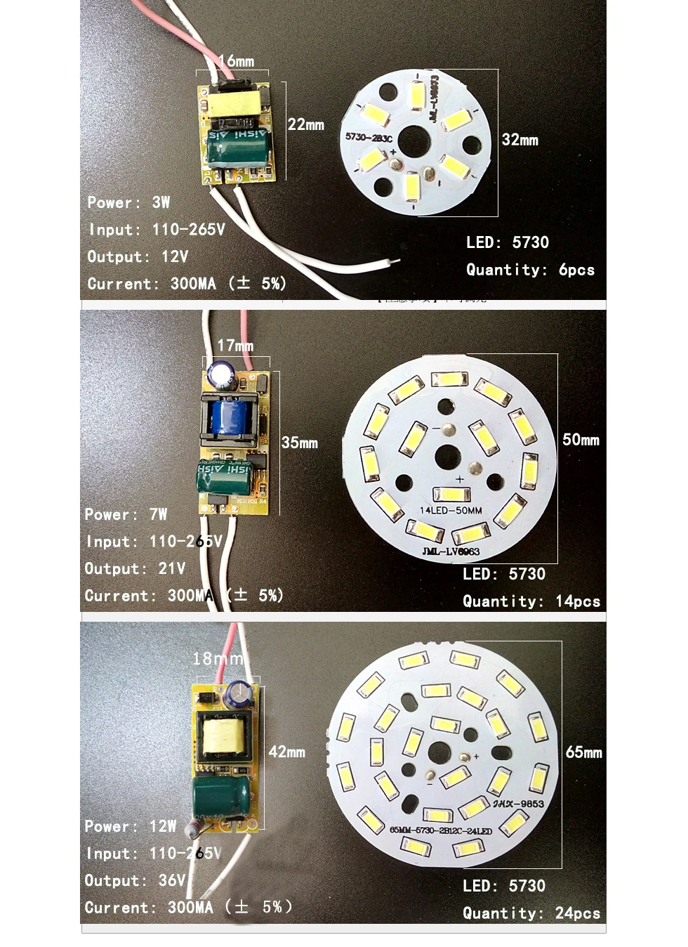Параметры продукта:Название продукта: источник питания привода + светильник LED5730Чип: 11*23 милТок: 300 мАЛюмены (лм): 130 лм/ВтСветильник; Цвет: теплый белый, белый