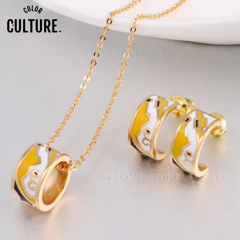 Ювелирный Комплект из колье и серёг золотого цвета | Украшения аксессуары