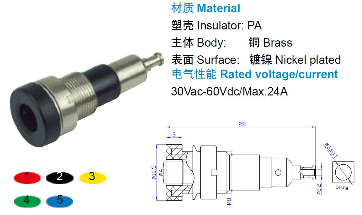 Amass 4mm Banana Socket Pure Copper nickel plated PA sheathed welding type resistant 24A