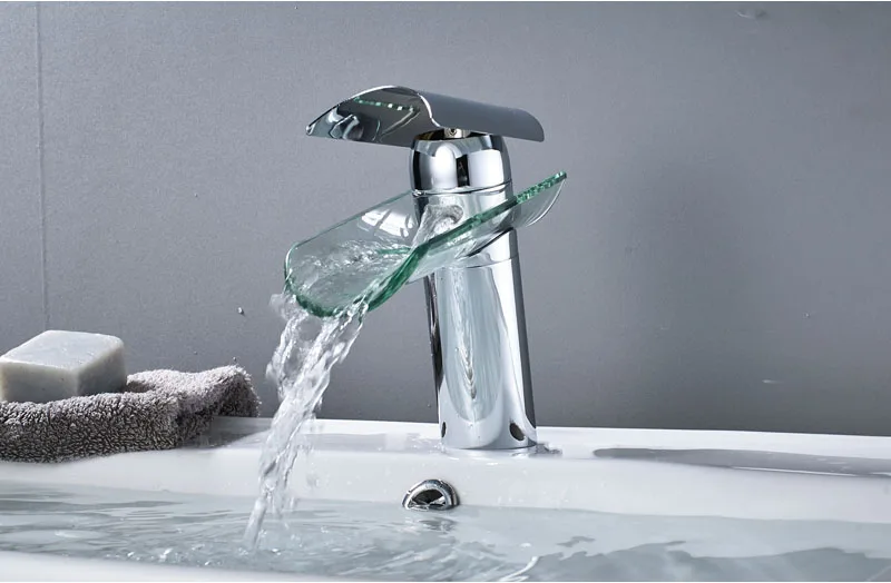 Смеситель для раковины POIQIHY, хромированный стеклянный смеситель для ванной комнаты с водопадом, смеситель для горячей и холодной воды, латунные Смесители Для Раковины