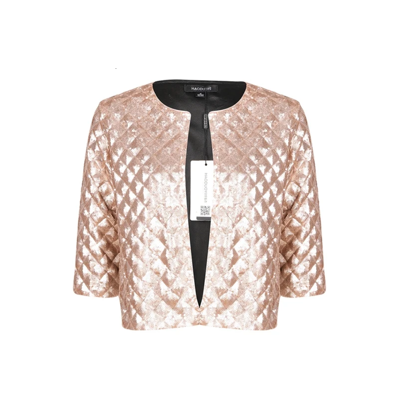 HDY Haoduoyi бренд 2018 женские золотистые с блестками 3/4 рукава военные куртки женские повседневные милые тонкие пальто на пуговицах верхняя одежда для женщин | |||||||||||||||||||||||||||||||||||||||