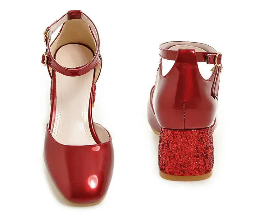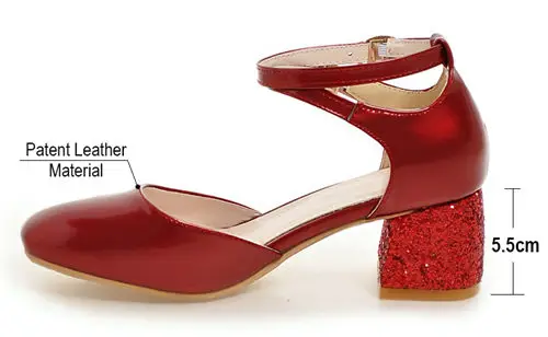 Женская обувь на высоком квадратном каблуке с блестками; D'Orsays Летние женские туфли-лодочки из лакированной кожи с двумя ремешками на лодыжках > Цвета: черный, красный, бежевый, розовый >Размер: ЕС 31-47/США 3-14 >Материал верха: лакированная кожа >Подкладка из микрофибры >Украшение: Блестки/блестки > Носок обуви: квадратный носок >Застежка: ремешок на щиколотке >Высота каблука: 5,5 см |