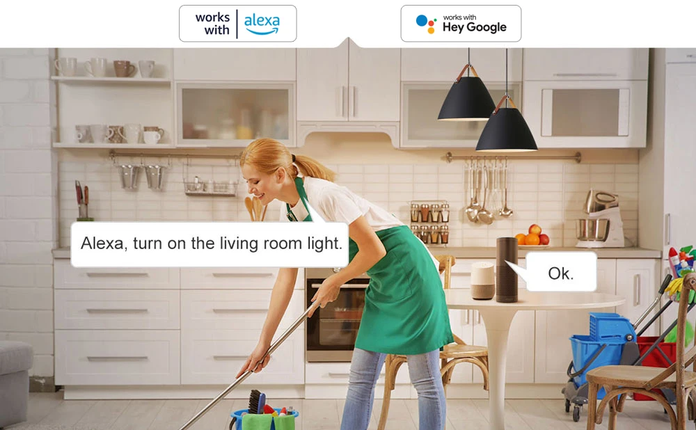 Совместим с Alexa и Google Home, умный переключатель позволяет управлять светом вкл/выкл с вашим голосом