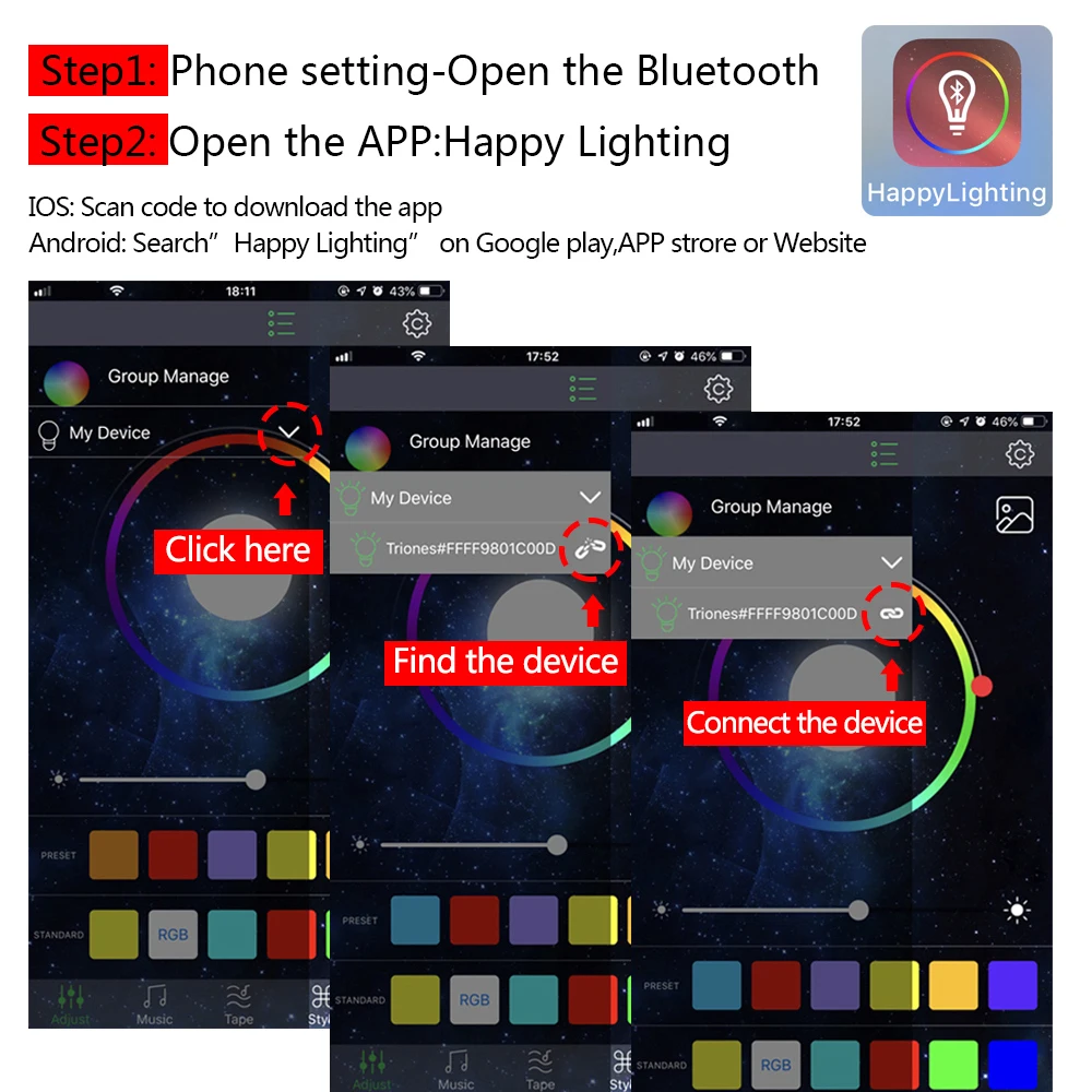 1.Рабочее напряжение: DC5-24V 2. Bluetooth 4,0Примечание: