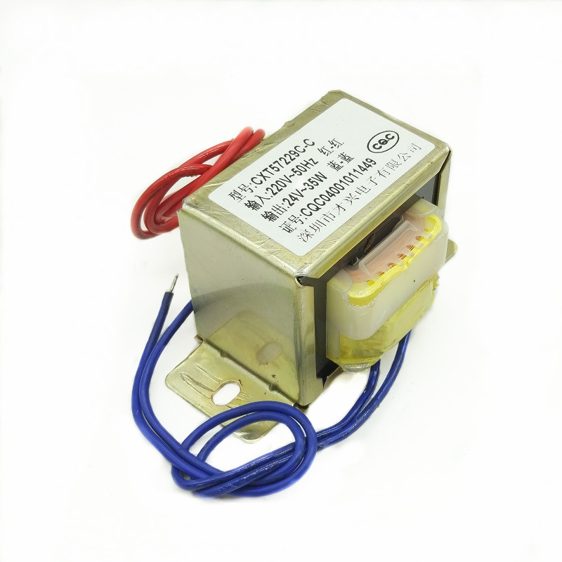 Название продукта: силовой трансформаторВходное напряжение: AC220V 50 ГцВыходное напряжение: 24 В переменного токаНоминальная мощность: 35 ВтРазмер внешнего вида: 60*61*51 ммФорма конструкции: однофазный трансформаторМодель продукта: EI57 * 35Длина входной линии: 170 мм (красно-красный)Длина выходной линии: 170 мм (сине-синий)Вес продукта: около 0.82GKРасстояние установки отверстия: 72 ммЧастотные характеристики: низкая частотаПримечания: размер, указанный выше, длинна * ширина * высокая. Ширина широкого пальца включает в себя ширину оправы и толщину железного сердечника 37 мм. (погрешность 1-2 мм).