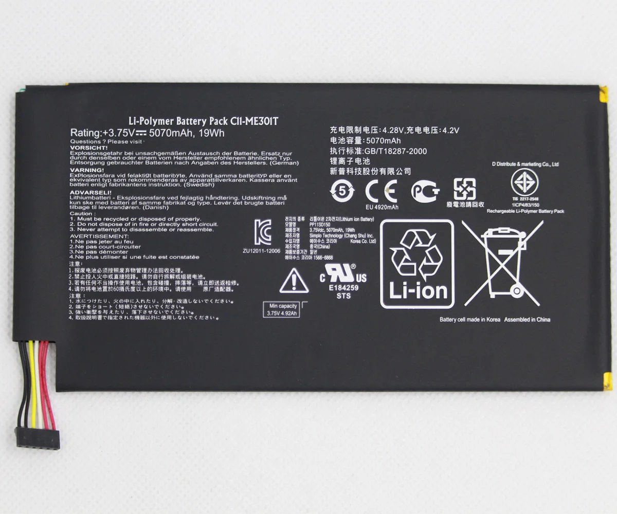 1 шт. батареи для ASUS C11-ME301TЕмкость: 5070 мАчТип батареи: литий-полимерныйБатарея Напряжение: 3,8 V-4,35 VПреимущества: