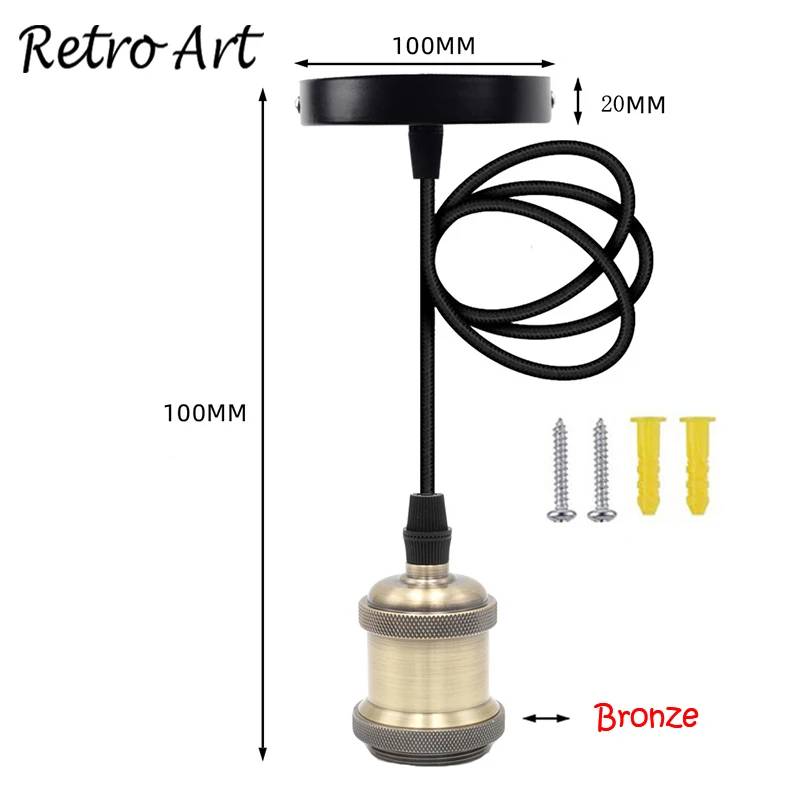 E26/ E27 Ceiling Hanging Textile Cord Lamp Holder Polished Pendant Light Fitting Kit