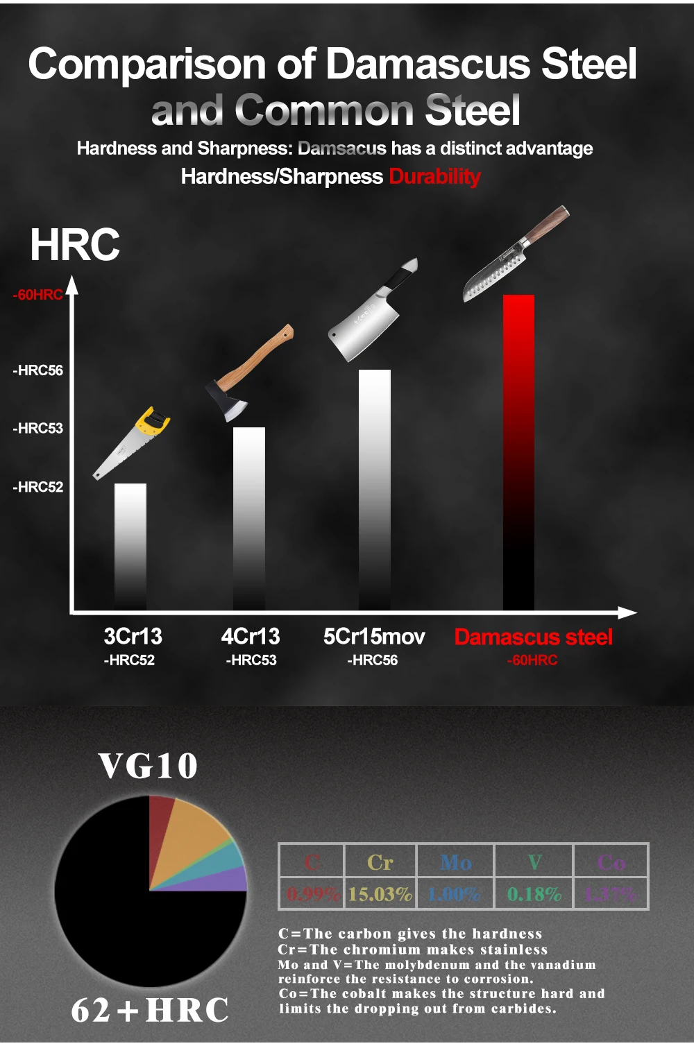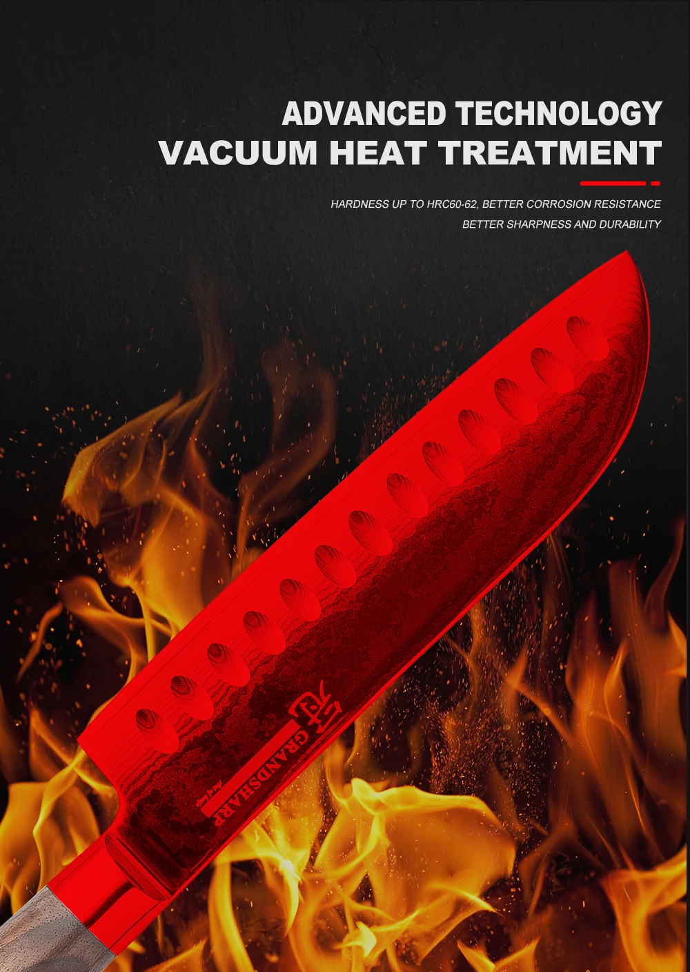 33-слой Нержавеющая сталь SUS430 & SUS431 на каждой стороне обеспечивают работу Совместного; HRC 60-62 твердость.