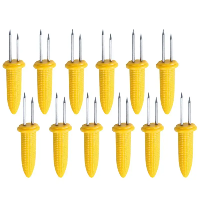12 шт., Кукурузные вилки, термостойкие маленькие держатели для кукурузы из нержавеющей стали, вилки для еды, инструмент для барбекю, пикника, кемпинга, барбекю