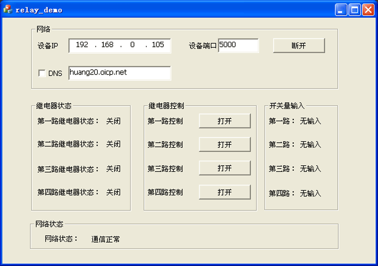 Отправка on1 означает включение первого реле, отправка off1 закрывает первое реле, а второй-четвертый метод управления одинаковый. Состояние реле считывания, например, возвращение к реле 1000, указывает на то, что первое реле закрывается и реле 2-4 отключено. Управление задержкой, например отправка on1:02, означает, что реле закрывается в течение 2 секунд и выпускается, отправка on1:12 означает, что реле закрывается в течение 12 секунд, И задержка до 99 секунд.