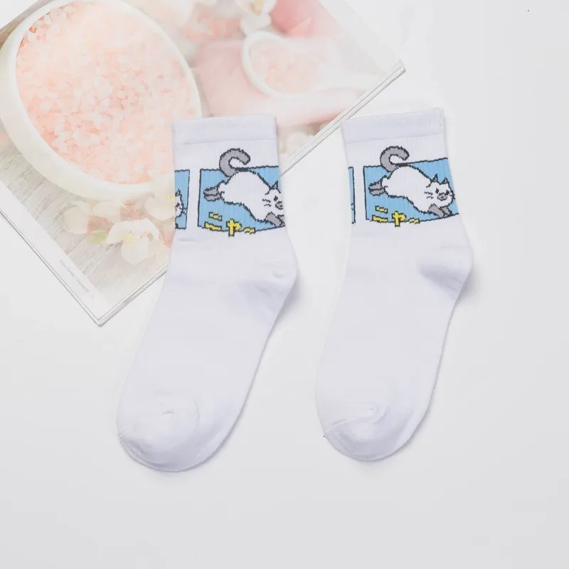 V-Hanver, летние женские хлопковые носки в стиле Харадзюку, с рисунком кота, милые, забавные, хипстерские, для скейтборда, для девочек, современные, креативные, кавайные носки