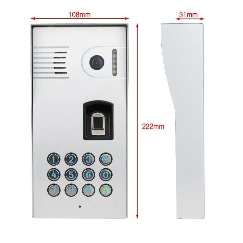 Наружный блок отпечатков пальцев управляется датчиком отпечатков пальцев и кодом, он внутренний интегрирован с визуальной внутренней схемой для подключения внутреннего монитора. И Используйте его для внутренней связи и Разблокируйте дверь. Подключение внутреннего телефона к внутренней связи, монитору и функции разблокировки!