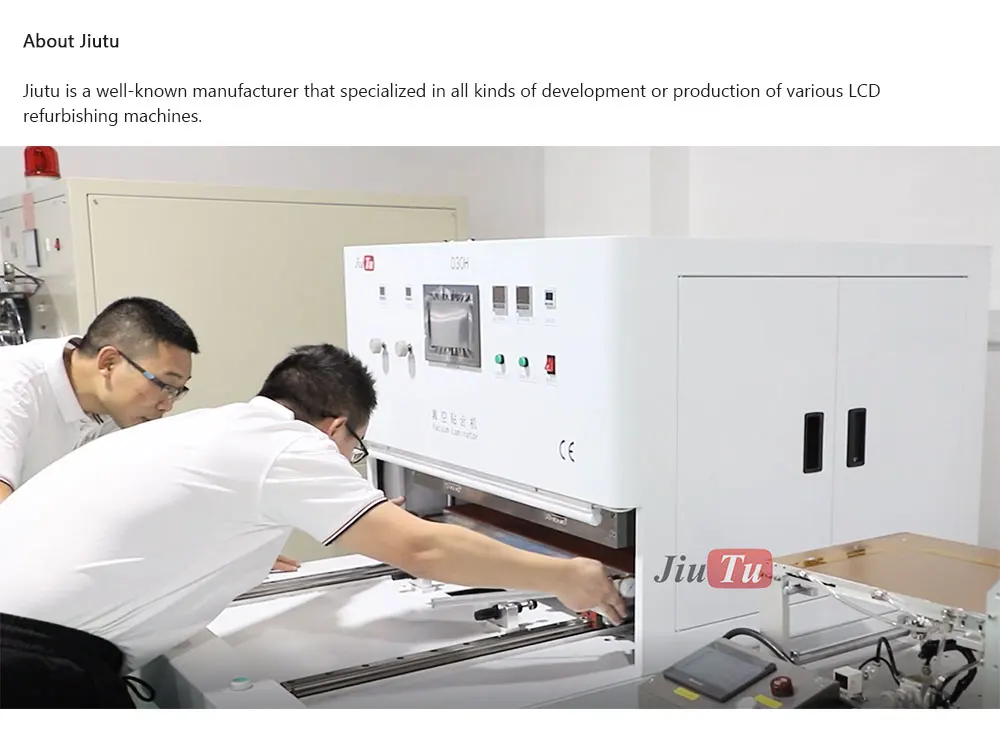 1 The equipment adopts PLC programming control, PLC is used as the control center of the whole system to realize the fully automatic operation of the equipment and eachThe setting of the operating parameters. The equipment is equipped with a man-machine interface, which is convenient for the user to adjust and monitor the fitting parameters according to the production situation. 2 The maximum splicable product size is 65 inches (applicable to the size of the stage is 1600mmx1000mm), which is compatible with small size, and the stage is compatible.It is precision machined from imported aluminum to ensure the hardness and stability of the equipment. 3 The heating platform of the equipment is heated by uniform heating pipes, the temperature uniformity is good, the product is not polluted, and the platform is imported.The aluminum is precision machined to ensure the stability of the hot melt G+G bonding process. 4 The equipment has over-temperature alarm stop heating, over-pressure alarm gas-breaking function, high safety factor and simple operationNote :